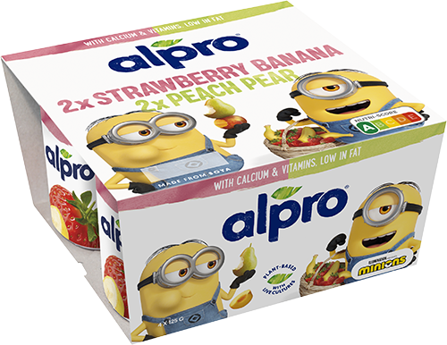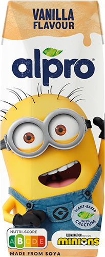 Minions en Alpro zorgen samen voor een onvergetelijke pauze. Kies uit de onweerstaanbare smaken chocolade, vanille en banaan als drankje en aardbei-banaan of perzik-peer als hap. Perfect om mee te nemen of lekker thuis. Met deze vrolijke drankjes en potjes wordt elke pauze een feestje! Miam miam!