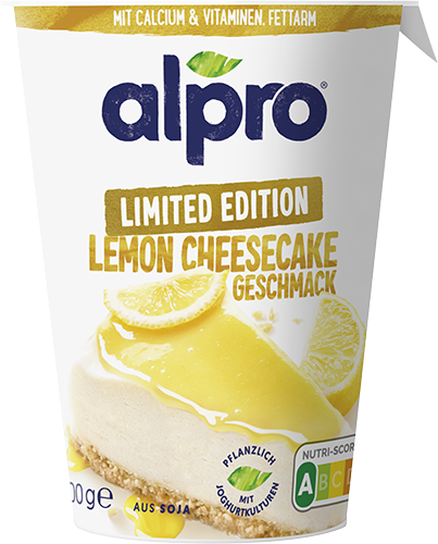 Bereit für den Frühling? Probiere die neue Soja-Joghurtalternative Limited Edition Lemon-Cheesecake. Mit der sommerlichen Note kann die warme Jahreszeit kommen! Der fruchtige Geschmack mit wenig Fett ist besonders reich an Kalzium und Proteinen und schmeckt dabei wie ein Cheesecake! In den cremigen Geschmack wirst du dich verlieben! Jetzt probieren und die Sommerzeit mit der neuen Alpro Limited Edition genießen.